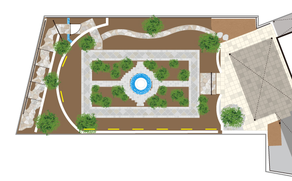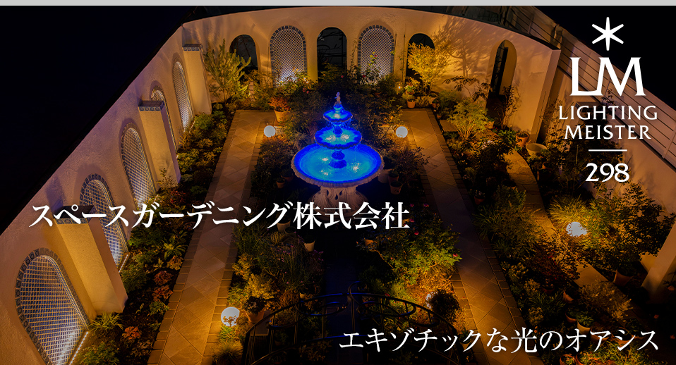 昼間のシンメトリーな外構デザインが持つ秩序感を、夜間は光のグラデーションとコントラストによって、奥行きと静けさを伴った幻想的な空間へと変えることにこだわった。単なる照度確保ではなく、飾壁や植栽といったテーマを構成する要素一つひとつに適切な光を当てることで、「地中海×モロッコ」の世界観を夜の闇の中で最高潮に高めるデザインを追求。